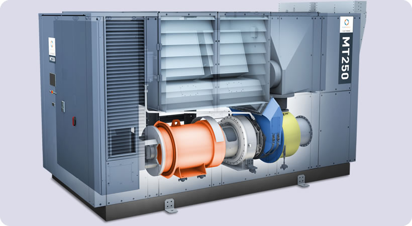Micro gas turbines have been around since around 1990. In addition to the low output in the range between 30 and 500 kW, the turbines are characterized by simple technology. The lower turbine inlet temperature allows uncooled blades. To increase efficiency, microturbines use recuperators that preheat the compressed air with the heat from the exhaust gas before it enters the combustion chamber. This makes efficiencies of around 30 percent possible. The largest manufacturer at present is the US company Capstone. Other manufacturers include Flexenergy, Turbec and Elliot.