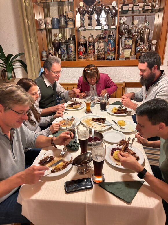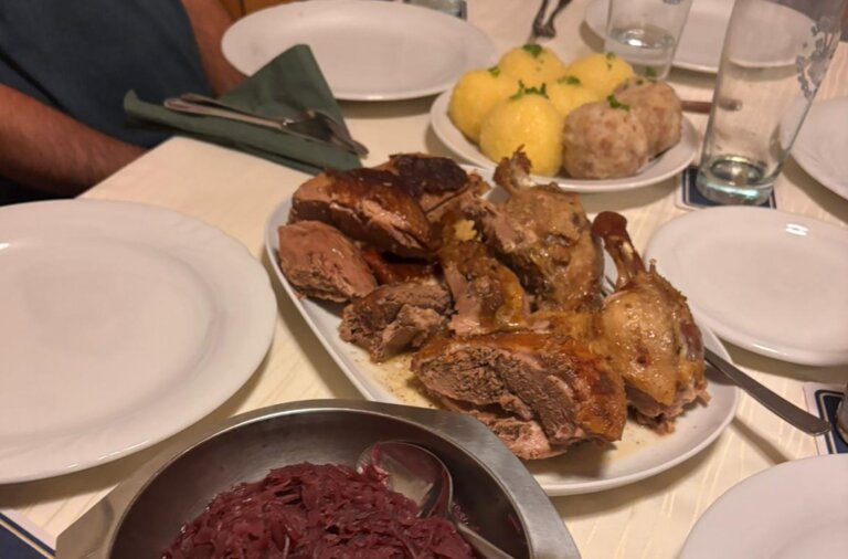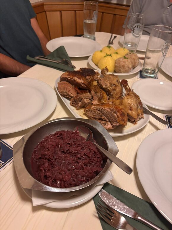 At this year's duck dinner at Landgasthof Röhrl in Pullach, we were once again treated to a delicious meal - crispy duck, served with red cabbage and dumplings.